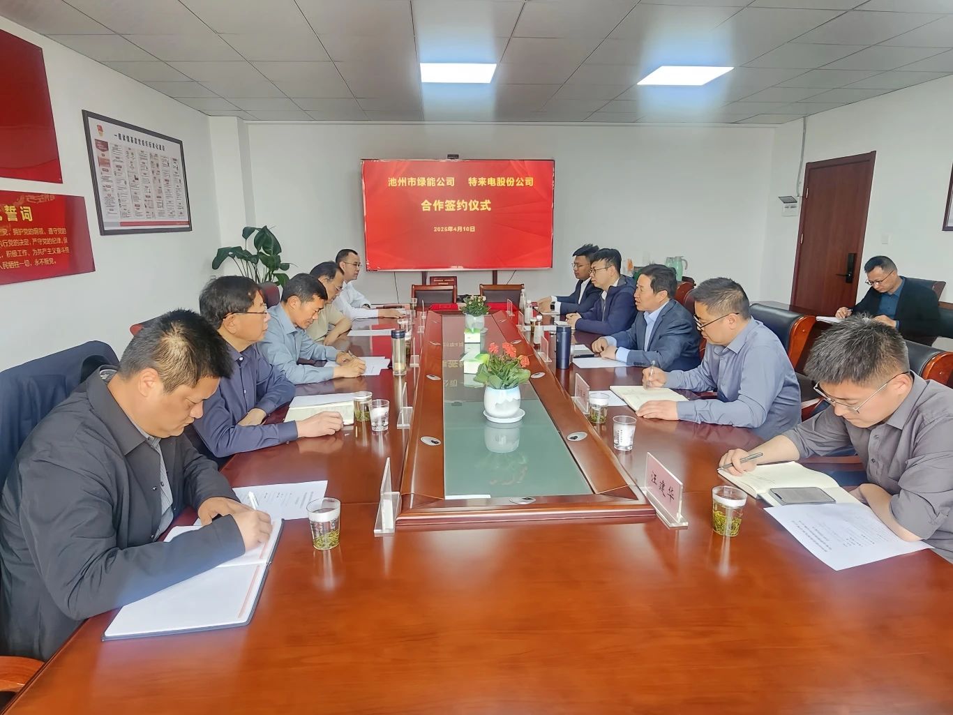 4月10日上午,集團(tuán)所屬綠能公司與特來電股份公司舉行虛擬電廠項(xiàng)目合作簽約儀式。市發(fā)改委黨組書記、主任劉榮華,集團(tuán)黨委書記、董事長汪偉等出席并見證簽約。新興產(chǎn)投集團(tuán)黨委書記、董事長吳雙壽主持簽約儀式。