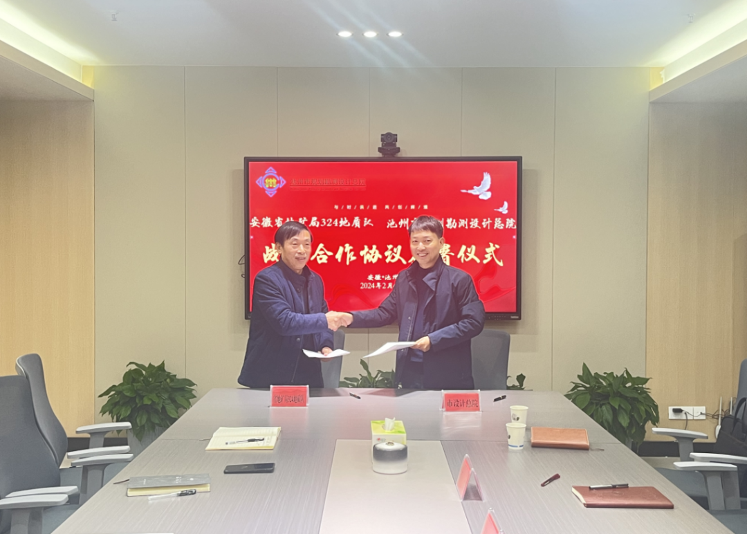 2月4日,池州市規(guī)劃勘測設(shè)計總院與安徽省地質(zhì)礦產(chǎn)勘查局324地質(zhì)隊簽署戰(zhàn)略合作協(xié)議。