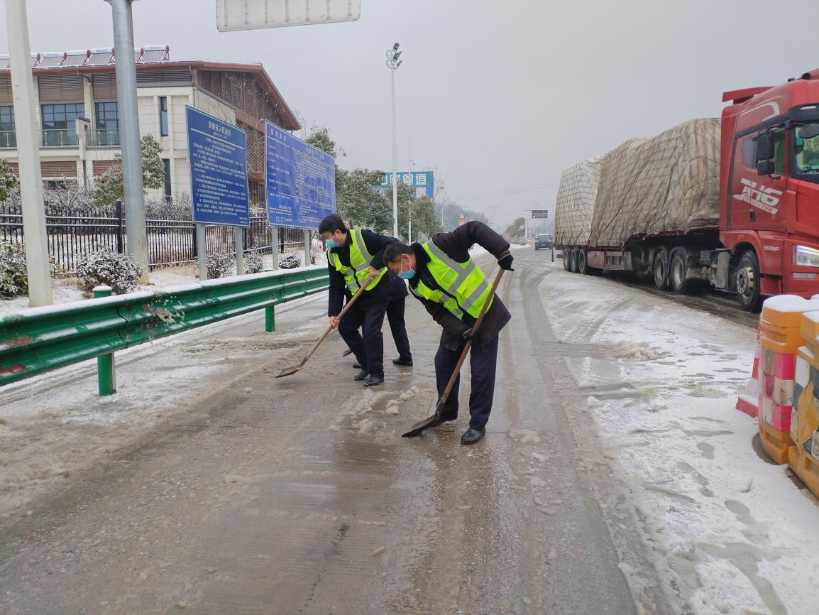 為確保G318墩上收費站通行安全,公司迅速成立除雪保暢通工作領導小組,負責統(tǒng)一指揮調度。黨員干部帶頭深入除雪一線,通過現(xiàn)場觀察及時掌握降雪情況及車輛通行狀況,全程調度除雪保暢工作各個環(huán)節(jié)。截止目前,G318墩上收費站出動志愿服務人員29人,開展掃雪除冰活動4次,累計保障約2萬輛車次安全通行。